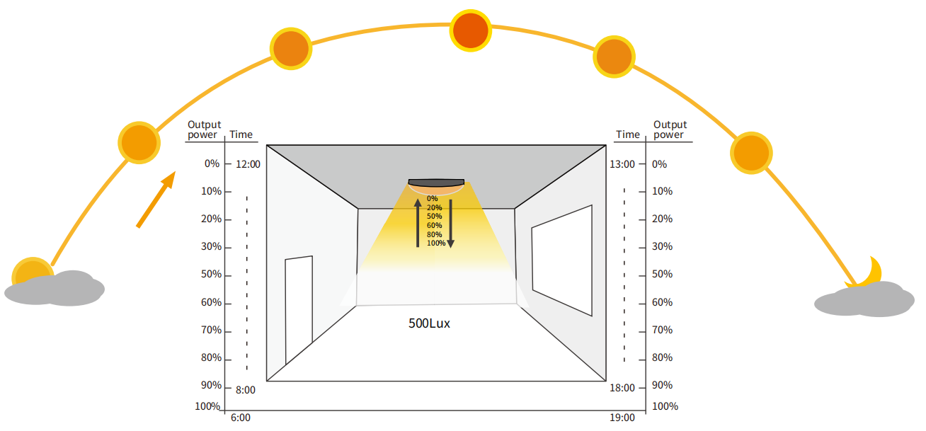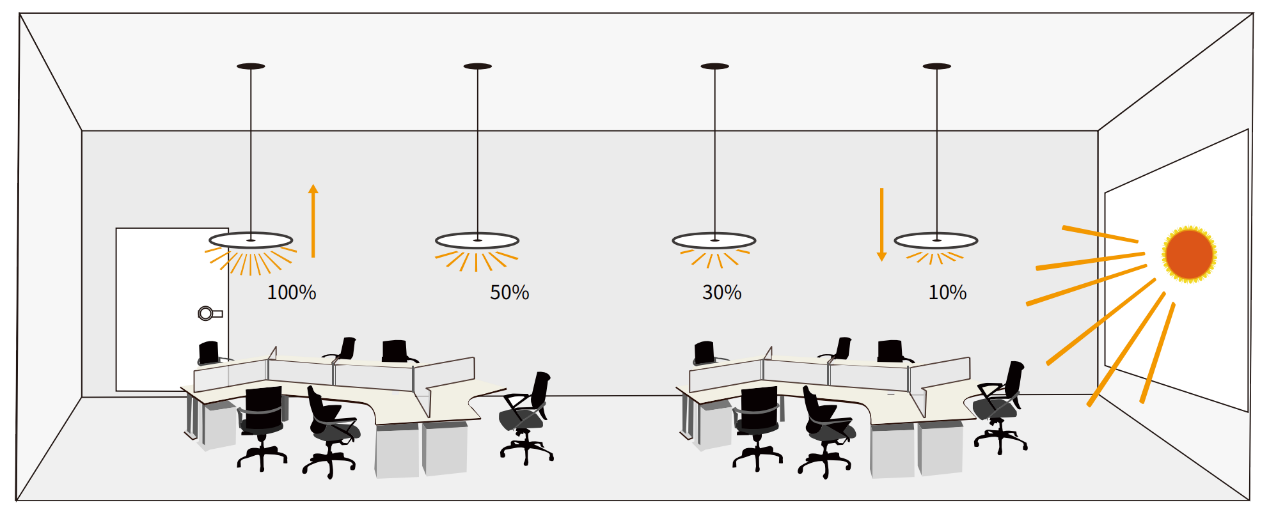 دن کی روشنی کی کٹائی - خود بخود محیطی روشنی کی شدت کا احساس دلاتا ہے اور توانائی کی کھپت کو بہتر بنانے کے لئے متحرک طور پر لیمپ کی چمک کو ایڈجسٹ کرتا ہے۔
