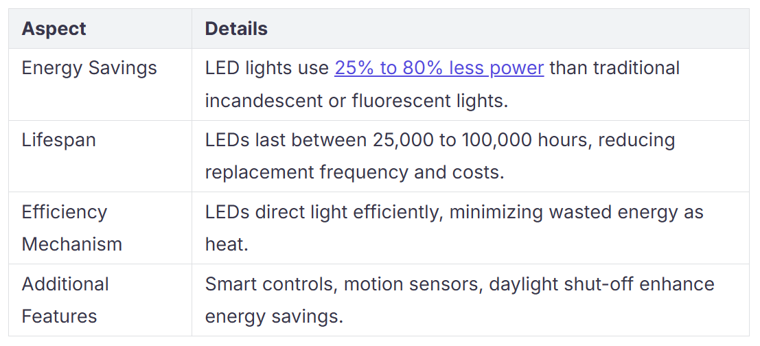سمارٹ خصوصیات کے ساتھ توانائی بچانے والی ایل ای ڈی لائٹس کا استعمال کریں۔ موشن سینسر طاقت اور کم اخراجات کو بچانے میں مدد کرتے ہیں۔