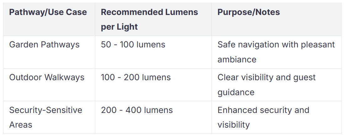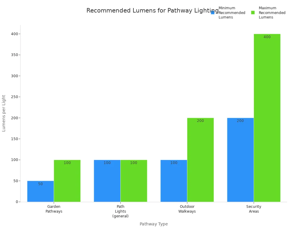 باہر محفوظ راستے رکھنا ضروری ہے۔ راستے کی روشنی سے لوگوں کو یہ دیکھنے میں مدد ملتی ہے کہ کہاں چلنا ہے۔ یہ دوروں اور گرنے کو بھی روکتا ہے۔ باغ کے راستوں کے لئے ، 50–100 لیمنس والی لائٹس کا استعمال کریں۔ اچھی روشنی کے لئے واک ویز کو 100–200 لیمنس کی ضرورت ہے۔ اگر آپ مزید سیکیورٹی چاہتے ہیں تو ، فی لائٹ 200–400 لیمنس استعمال کریں۔ یہاں تک کہ روشنی کے لئے آؤٹ ڈور ایل ای ڈی لائٹس کو 6-8 فٹ کے فاصلے پر رکھیں۔ تنگ راستوں کو ایک ساتھ قریب لائٹس کی ضرورت ہے۔ وسیع راستوں میں روشنی سے کہیں زیادہ روشنی ہوسکتی ہے۔ زمین سے تقریبا 14 14 انچ روشنی رکھیں۔ یہ براہ راست بیم دیتا ہے اور راستہ اچھ look ا لگتا ہے۔