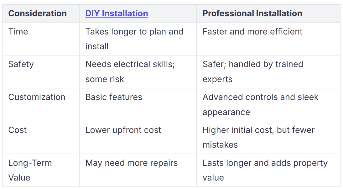 آپ خود سے بیرونی ایل ای ڈی لائٹس لگا سکتے ہیں یا مدد حاصل کرسکتے ہیں۔ یہ خود کرنے سے پیسہ بچ جاتا ہے اور آپ کو ڈیزائن منتخب کرنے دیتا ہے۔ آپ کو بجلی کے بارے میں کچھ چیزیں جاننے کی ضرورت ہے اور منصوبہ بندی میں وقت نکالنے کی ضرورت ہے۔ اگر آپ غلطیاں کرتے ہیں تو ، یہ غیر محفوظ ہوسکتا ہے یا لائٹس توڑ سکتا ہے۔